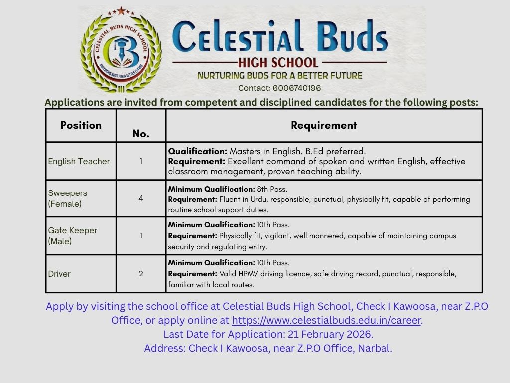 The school is dedicated to creating a supportive and inclusive environment where students can thrive academically, socially, and emotionally. Through a range of extracurricular activities and opportunities for personal development, Celestial Buds High School strives to prepare its students to reach for the stars and make a positive impact on the world.